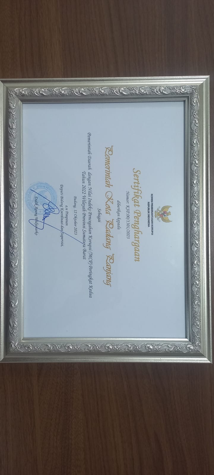 Inspektorat Kota Padang Panjang memperoleh nilai tertinggi tingkat Sumatera Barat untuk Penilaian Indek Survey Penilaian Integritas (SPI) tahun 2022